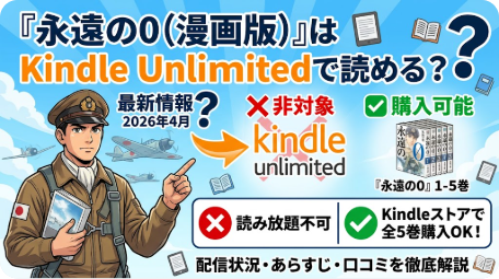 先に結論だけ言うと、『永遠の0(漫画版)』は今のところKindle Unlimitedの読み放題対象外です。とはいえAmazonのKindleストアでは買えるので、話題が大きい今のうちに読み始めるにはちょうどいいタイミングだと感じました。