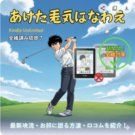 『あした天気になあれ』は、『あしたのジョー』で知られるちばてつや先生が描いた全58巻の本格ゴルフ漫画です。「Kindle Unlimitedで全巻読めるの?」と気になっている方も多いのではないでしょうか。結論からお伝えすると、2026年2月8日時点では1巻のみがKindle Unlimited対象となっています。ただし、2026年1月には全58巻が期間限定で読み放題対象になっていた実績があり、今後再び全巻対象になる可能性は十分にあります。この記事では、最新の配信状況からお得に読む方法、読者のリアルな口コミまで詳しくご紹介します。