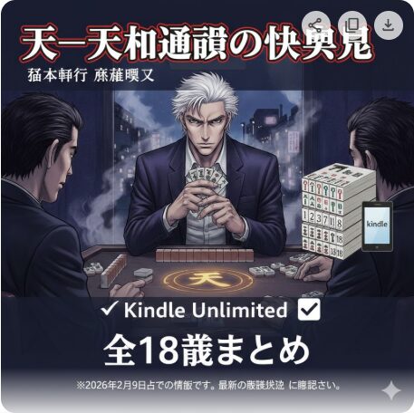 『天-天和通りの快男児』全18巻のKindle Unlimited対象状況を2026年2月時点で徹底調査。読み放題で読める巻数、お得に全巻読破する方法、口コミ・評判まで完全網羅。福本伸行の名作麻雀漫画をお得に楽しもう。 -