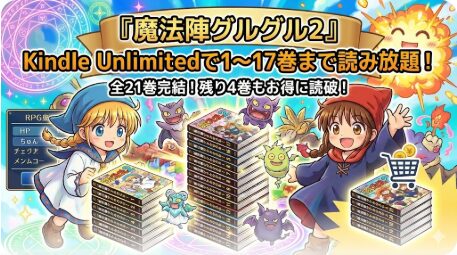 魔法陣グルグル2はKindle Unlimitedで1〜17巻が読み放題対象(2026年2月確認)。全21巻中の対象巻・非対象巻の詳細から続きをお得に読む方法・評判・口コミまで徹底解説します。 -