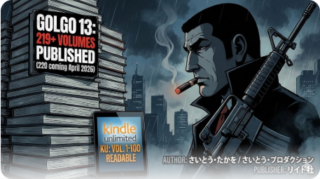 ゴルゴ13はKindle Unlimitedで1巻〜100巻が読み放題対象です(2026年2月確認)。全219巻中100巻分を月額980円でお得に楽しむ方法、読者のリアルな評判・口コミ、一話完結で途中から読めるおすすめエピソードの見どころまで最新情報を徹底解説します。 -