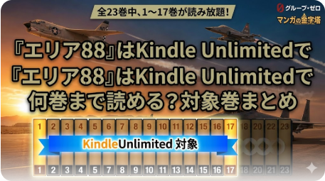 『エリア88』はKindle Unlimitedで全23巻中17巻まで読み放題対象です。2026年2月最新の配信状況、残り6巻をお得に読む方法、作品の評判・口コミまで徹底解説します。