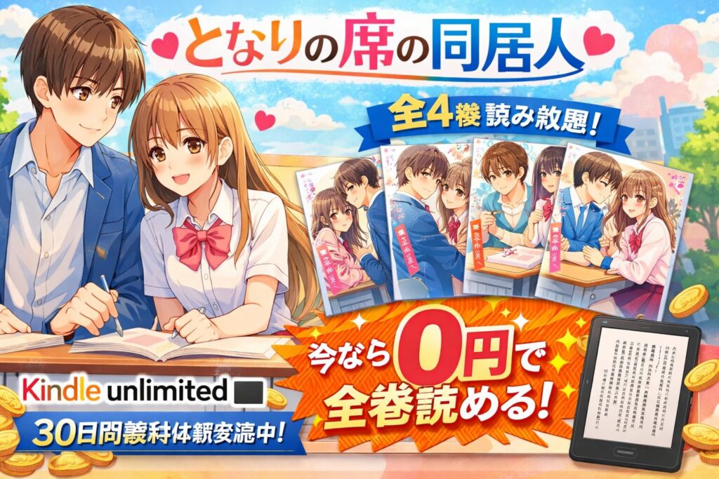 「となりの席の同居人」はKindle Unlimitedで全巻読み放題?配信状況・口コミ・お得な読み方を徹底解説【2026年最新】