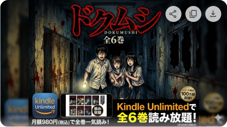 『ドクムシ』は廃校に閉じ込められた男女7人が繰り広げるサバイバルホラー漫画で、シリーズ累計100万部を突破した人気作品です。結論として、2026年3月時点で『ドクムシ』全6巻はKindle Unlimitedの読み放題対象となっており、月額980円(税込)で全巻一気... -