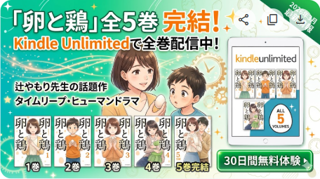 「卵と鶏」は Kindle Unlimited で全巻読める?全5巻の配信状況とお得な読み方を徹底解説【2026年3月最新】 辻やもり先生による話題のタイムリープ・ヒューマンドラマ『卵と鶏』は、全5巻完結済みの作品です。2026年3月現在、Kindle Unlimitedの読み放題対... -