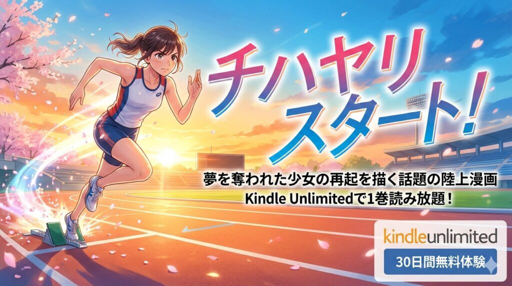 「チハヤリスタート!」はKindle Unlimitedで1巻が読み放題対象です。コロナ禍で夢を奪われた少女の再起を描く話題の陸上漫画を、まずは月額980円(税込)の読み放題、もしくは30日間無料体験で0円から試してみませんか。この記事では2026年2月22日時点の配... -