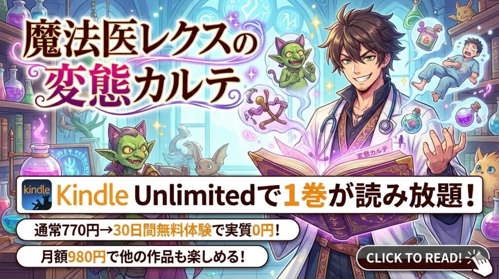 「魔法医レクスの変態カルテ」はKindle Unlimitedで1巻が読み放題!配信状況・口コミ・お得な読み方を徹底解説【2026年2月最新】