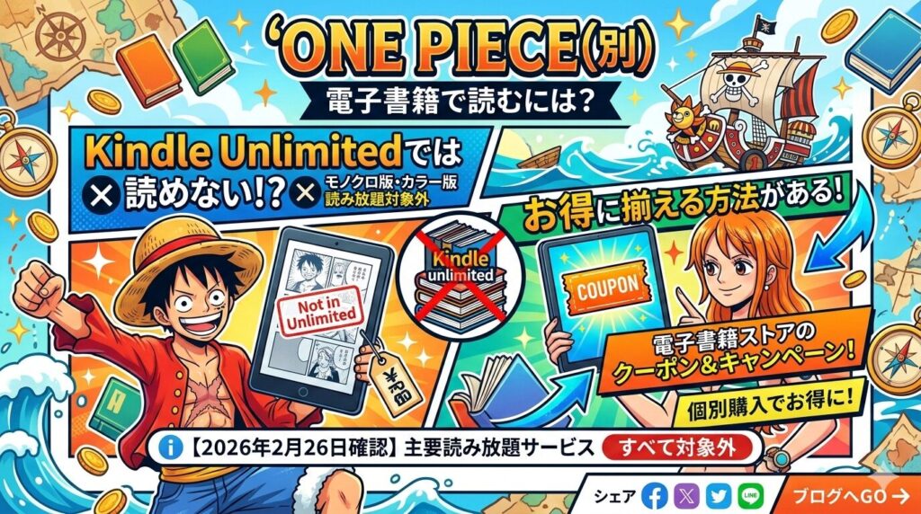 『ONE PIECE』はKindle Unlimitedで読める?配信状況・全巻の価格・お得な読み方を徹底解説【2026年2月最新】