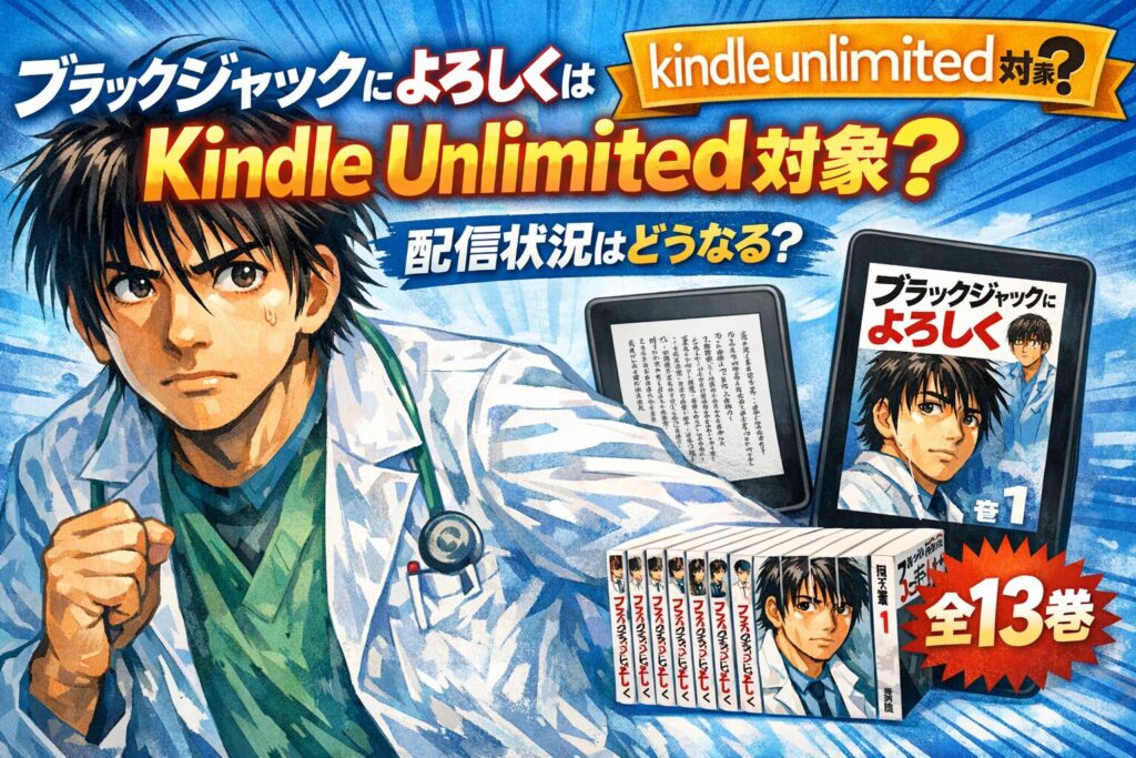 ブラックジャックによろしくはKindle Unlimited対象?配信状況【2026年4月最新】 『ブラックジャックによろしく』は2026年4月13日時点でKindle Unlimitedの読み放題対象外です。いまはKindleストアで全13巻を購入して読む形が基本になります。完結済みなの...