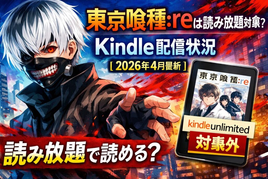 東京喰種:reは読み放題対象?Kindle配信状況【2026年4月最新】 『東京喰種:re』は2026年4月13日時点でKindle Unlimitedの読み放題対象外です。全16巻完結のため追い切りやすい一方で、購入前に対象巻の有無、版違いの混線、前作とのつながりを先に押さえて... -