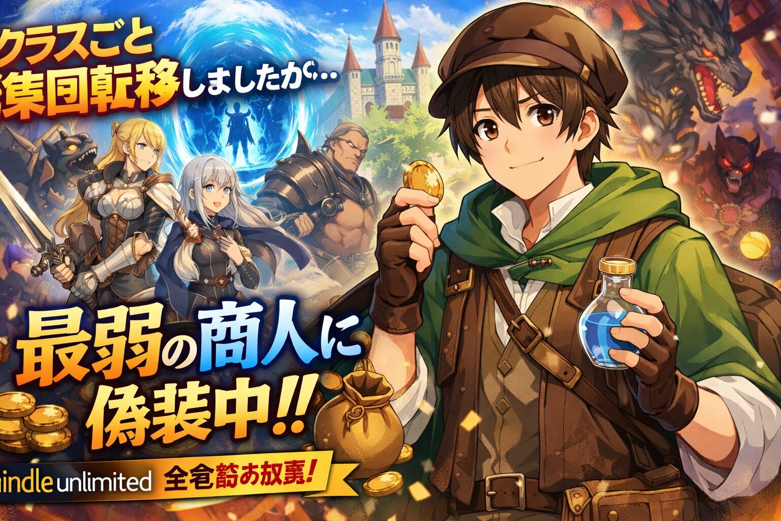 「クラスごと集団転移しましたが…最弱の商人に偽装中」全巻Kindle Unlimited読み放題!