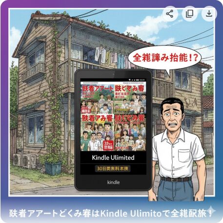 A. 『独身アパートどくだみ荘』の続編にあたる『新・どくだみ荘』(全7巻)は別作品として電子書籍化されています。Kindle Unlimited対象かどうかは時期により異なるため、Amazon Kindleストアで「新・どくだみ荘」を検索して最新の配信状況をご確認ください。