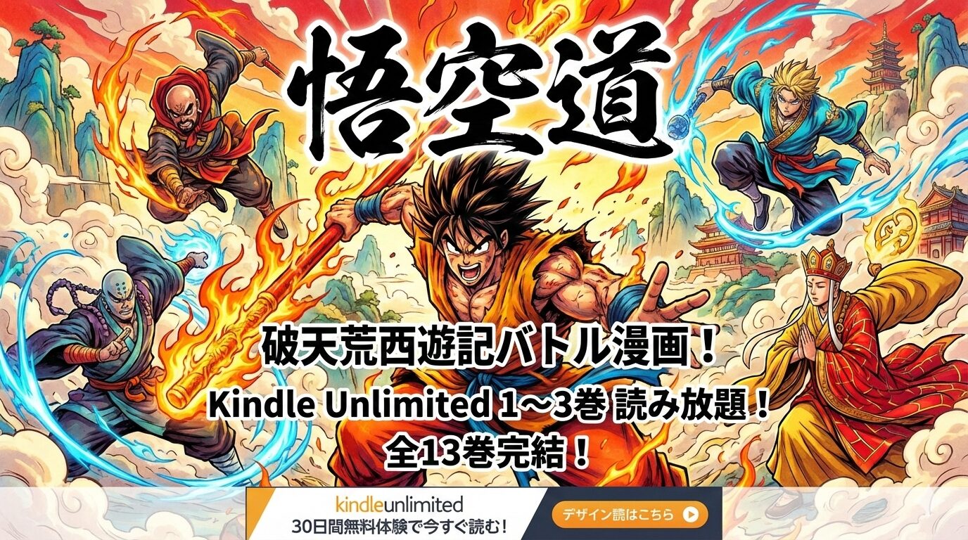 Kindle Unlimitedでは1〜3巻が読み放題対象となっており、30日間の無料体験を利用すれば0円で序盤を読むことができます。まずは無料で作品の雰囲気を確かめてから、続きを購入するかどうか判断できるのが大きなメリットです。気になった方は、ぜひこの機会に「悟空道」の世界に飛び込んでみてください。