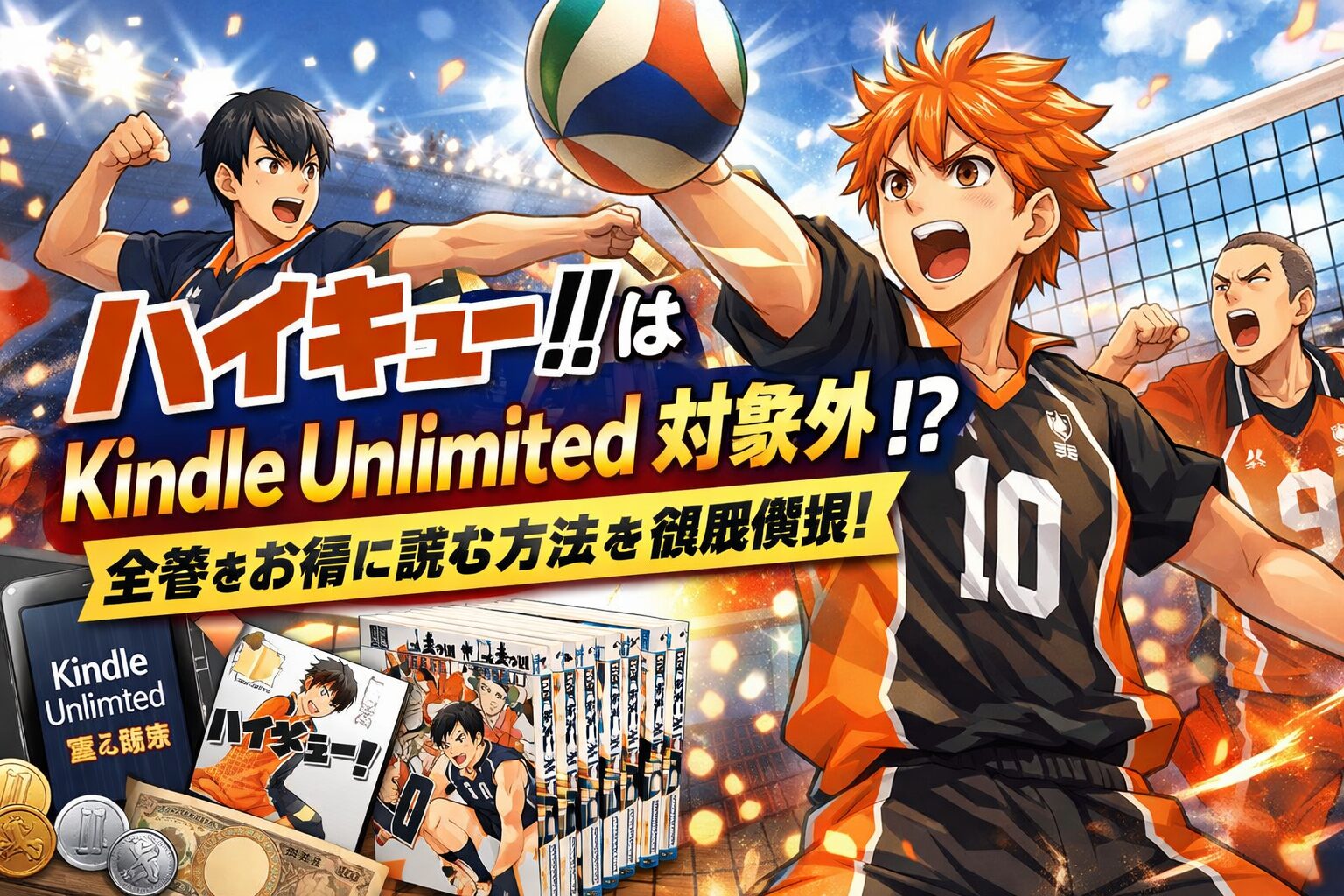 「ハイキュー!!をKindle Unlimitedで読みたい」と思って調べている方へ、結論からお伝えします。残念ながら『ハイキュー!!』は2026年2月現在、Kindle Unlimitedの読み放題対象外です。本記事では、配信状況の詳細から全巻をお得に読む方法、作品の魅力や口コミまで徹底的に解説します。