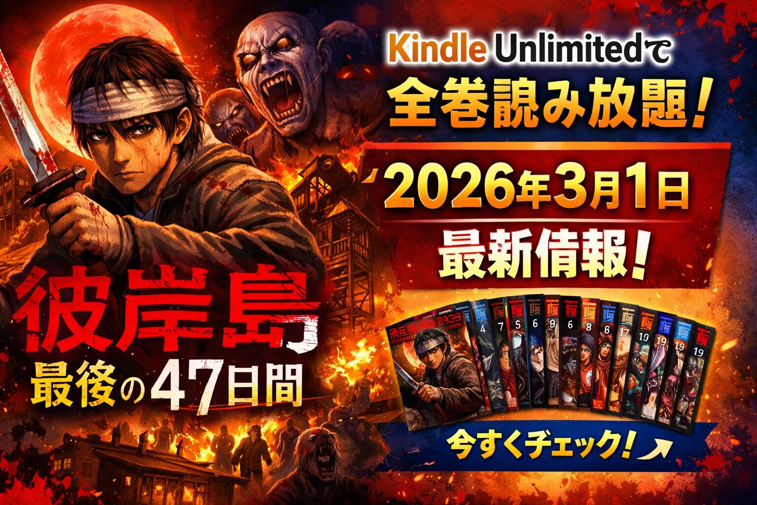 「彼岸島 最後の47日間」はKindle Unlimitedで読める?全16巻の配信状況とお得な読み方を徹底解説【2026年3月最新】