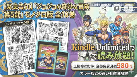 「ジョジョの奇妙な冒険 第5部(別)」はKindle Unlimitedで読める?モノクロ版・カラー版の配信状況・口コミ・お得な読み方を徹底解説【2026年2月最新】