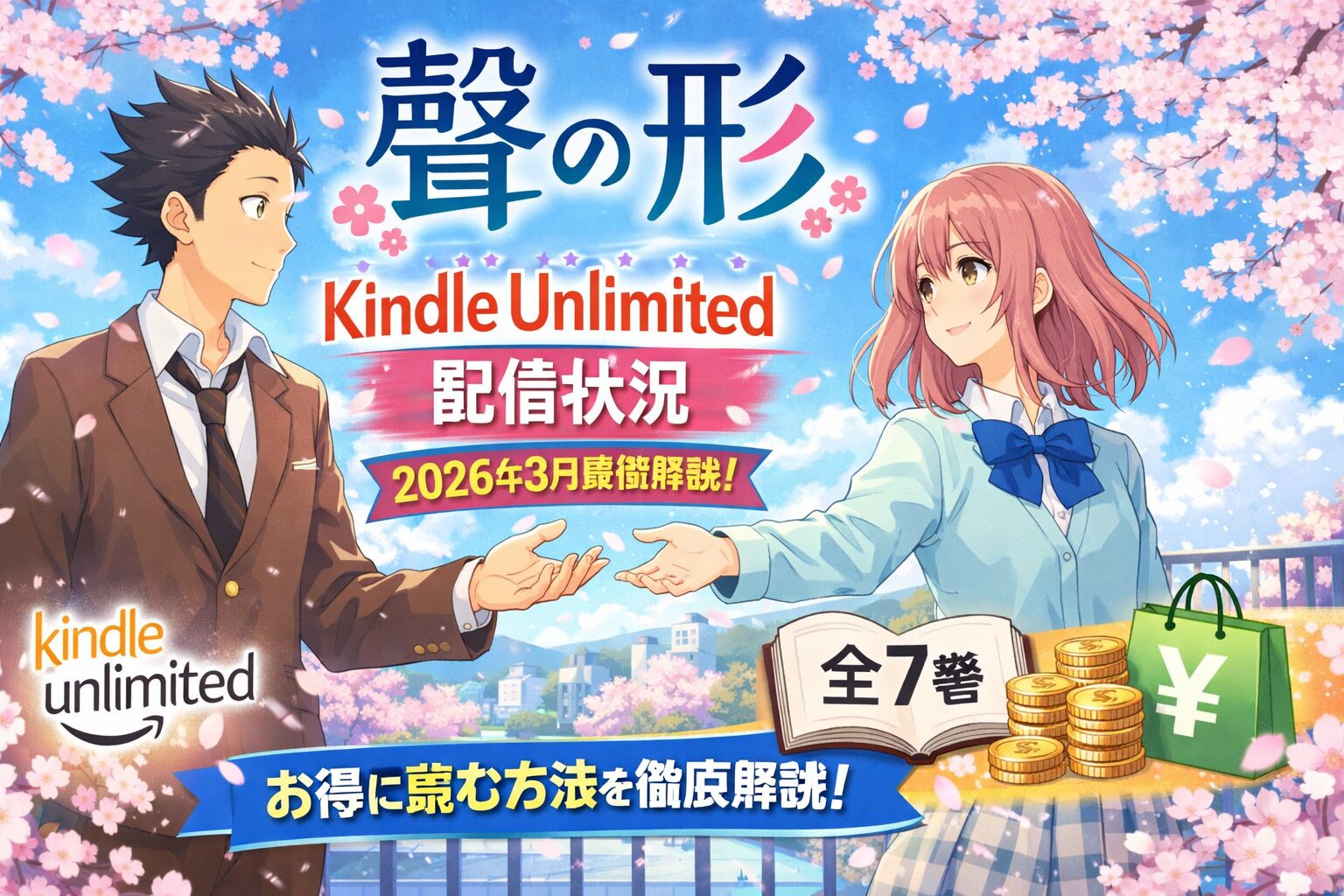 2026年3月現在、『聲の形』はKindle Unlimitedの読み放題対象には含まれていませんが、Kindle版(電子書籍)として全7巻を購入して読むことが可能です。Kindle Unlimitedでは他の漫画作品が多数読み放題の対象となっているため、30日間の無料体験を利用して気になる作品をまとめて読むのもおすすめです。『聲の形』の配信状況は今後変わる可能性もあるため、ぜひ定期的にチェックしてみてください。