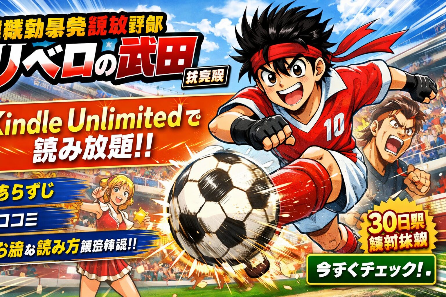 2026年3月時点では、Kindle Unlimitedで新装版の1〜7巻が読み放題対象となっており、30日間の無料体験を活用すればゼロ円でまず読み始めることができます。Jリーグが誕生した時代のサッカー漫画ブームを牽引した歴史的な一作を、ぜひこの機会に体験してみてください。
