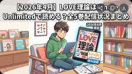2026年4月17日時点で、漫画版『LOVE理論』はKindle Unlimitedで読めます。全5巻完結なので、KU対象の今はかなり入りやすい。