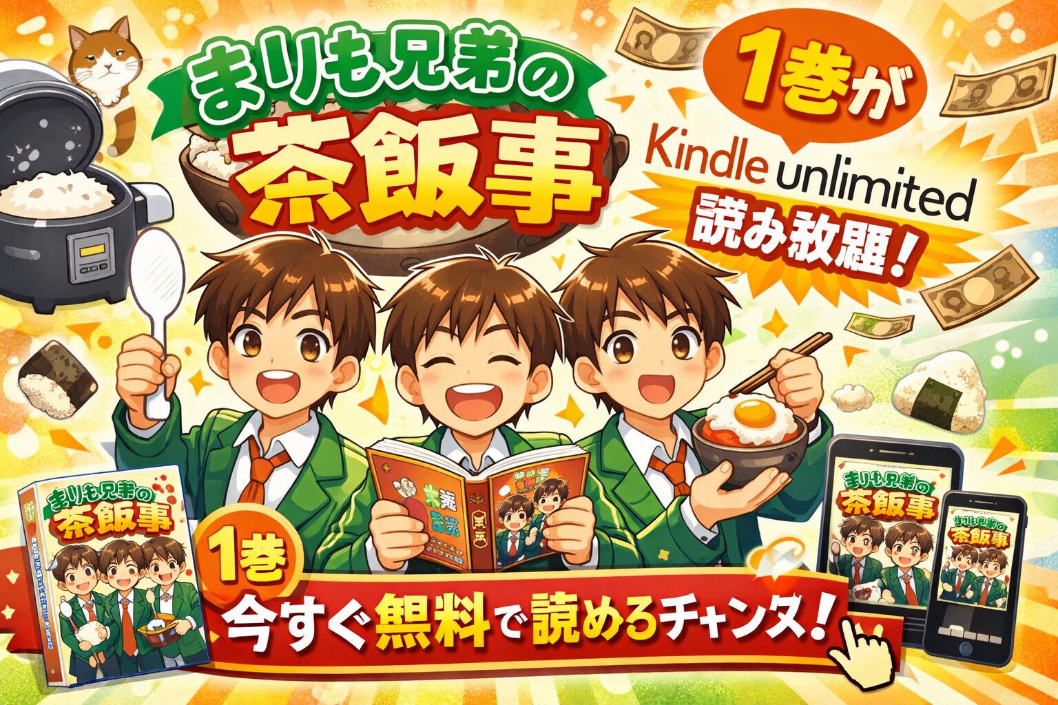 「まりも兄弟の茶飯事が気になるけど、お得に読める方法はないかな?」とお探しのあなたへ。結論から言うと、『まりも兄弟の茶飯事』は1巻がKindle Unlimitedの読み放題対象として配信されています(2026年3月10日確認)。三つ子男子高校生のドタバタコメディに笑いたい方は、まず無料体験から試してみましょう。