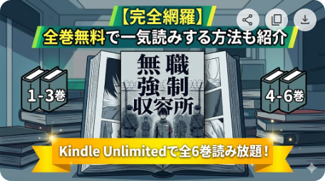 なお、Kindle Unlimitedの対象作品は定期的に入れ替わることがあります。「無職強制収容所」が全巻対象になっている今のうちに読んでおくのがおすすめです。