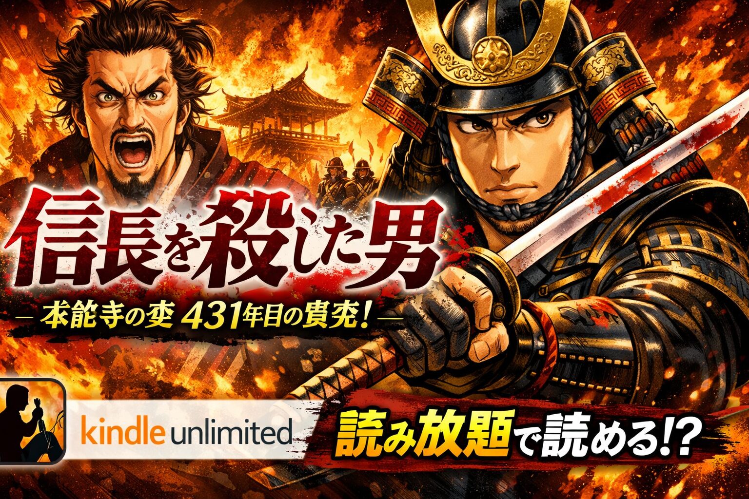 「信長を殺した男~本能寺の変 431年目の真実~」は、明智光秀の子孫である歴史研究家・明智憲三郎の著書を原案に、藤堂裕が作画を手がけた本格歴史漫画です。本能寺の変の”真相”に迫る衝撃的なストーリーが話題を呼び、続編「日輪のデマルカシオン」も含めてシリーズ累計で大きな人気を集めています。この記事では、本作のKindle Unlimitedでの配信状況やお得な読み方、口コミ・評判を2026年3月時点の最新情報でお届けします。