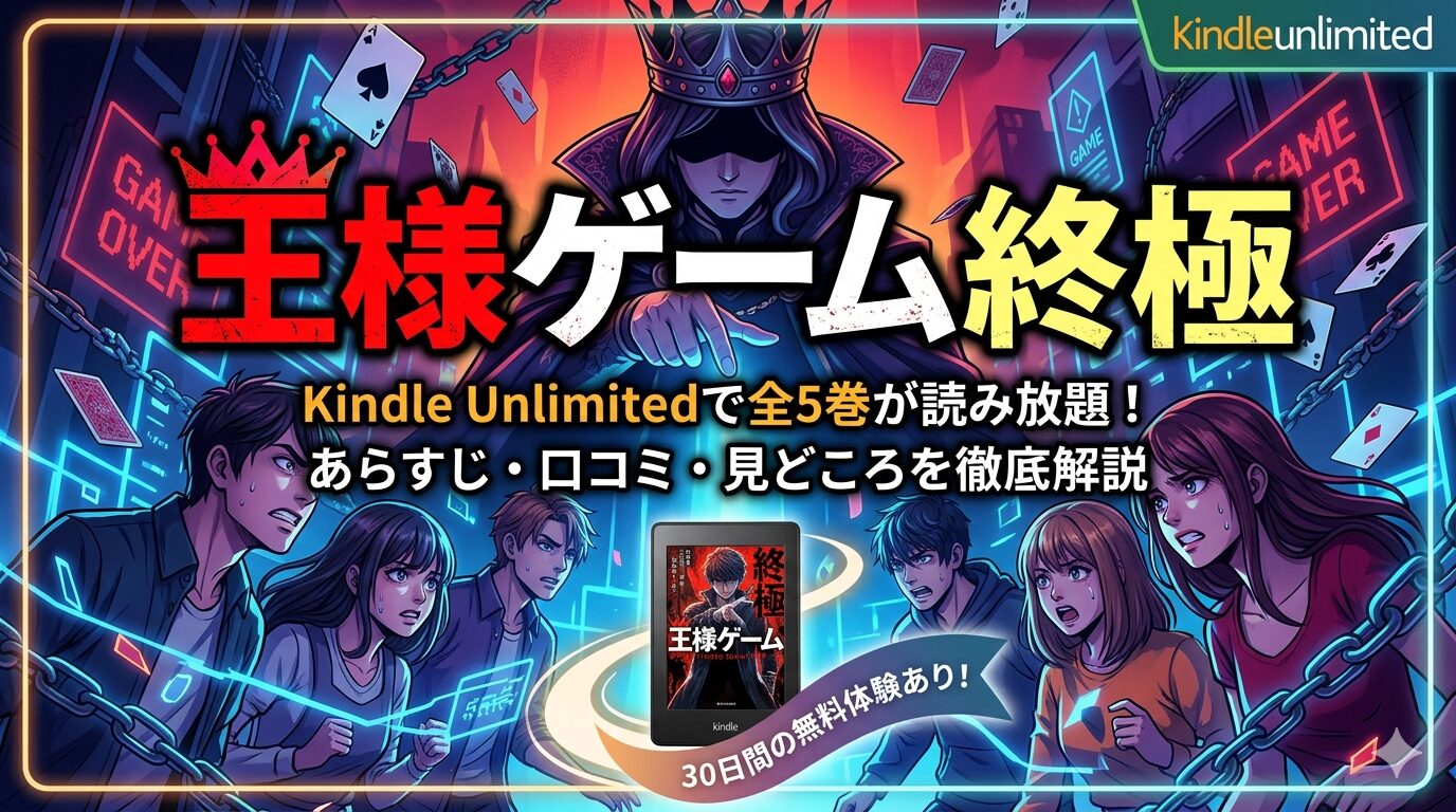 2026年3月10日時点で、「王様ゲーム 終極」全5巻がKindle Unlimitedの読み放題対象になっていることを確認しています。ただし、Kindle Unlimitedの対象作品は予告なく変更される可能性があるため、登録前にAmazonの配信ページで最新状況をご確認ください。