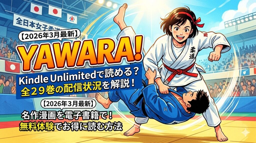 YAWARA!(ヤワラ)はKindle Unlimitedで読める?全29巻の配信状況・口コミ・お得な読み方を徹底解説【2026年3月最新】 浦沢直樹の名作スポーツ漫画「YAWARA!」を電子書籍で読みたいとお考えの方へ。結論として、YAWARA!完全版デジタルVer.(全29巻)はKind... -