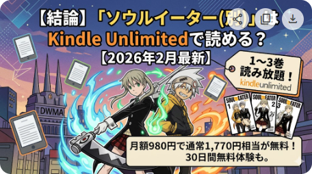 Kindle Unlimitedの読み放題対象巻は時期によって入れ替わる可能性があるため、最新の配信状況は必ずAmazon公式サイトでご確認ください。より詳しい配信情報は「ソウルイーター」のKindle Unlimited配信状況を徹底解説した記事でもまとめています。