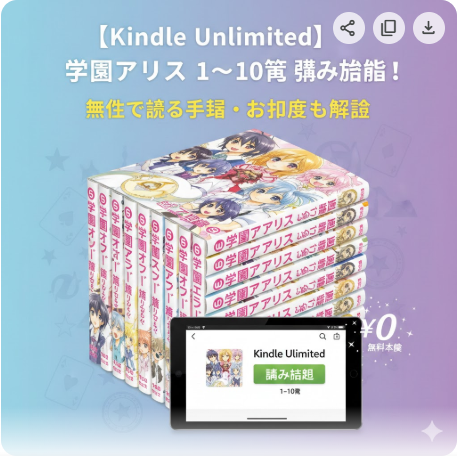 学園アリスはKindle Unlimitedで1〜10巻まで読み放題(2026年2月8日確認)。全31巻中10巻分・6,930円相当が月額980円で読めます。無料体験の登録手順やお得度、11巻以降を安く読む方法も詳しく解説します。 -