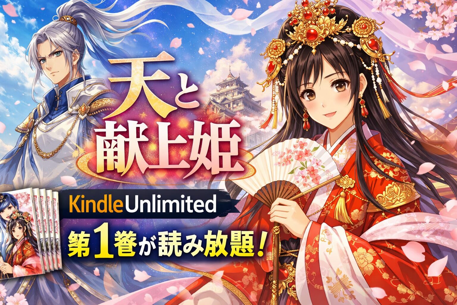 「天と献上姫」をKindle Unlimitedで読みたいと思っていませんか?結論からお伝えすると、本作は2026年2月現在、Kindle Unlimitedで一部(1冊)が読み放題対象です。全15巻すべてを読み放題で読むことはできませんが、お試しで1巻目を楽しむことは可能です。