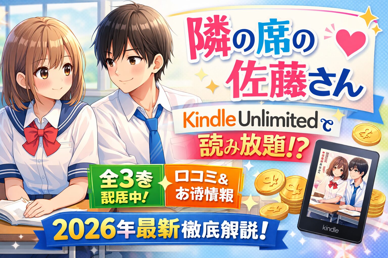 「隣の席の佐藤さん」はKindle Unlimitedで読み放題?全3巻の配信状況・口コミ・お得な読み方を徹底解説【2026年最新】