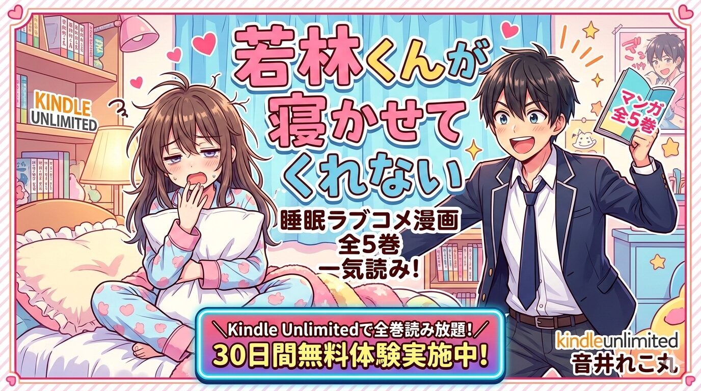 「若林くんが寝かせてくれない」は、音井れこ丸先生による睡眠ラブコメ漫画で、全5巻すべてがKindle Unlimitedの読み放題対象です。月額980円(税込)で全巻一気読みでき、さらに30日間の無料体験を使えば実質0円で楽しめます。