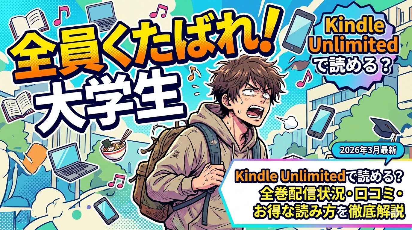 「全員くたばれ!大学生」はKindle Unlimitedで読める?全巻の配信状況・口コミ・お得な読み方を徹底解説【2026年3月最新】